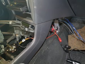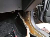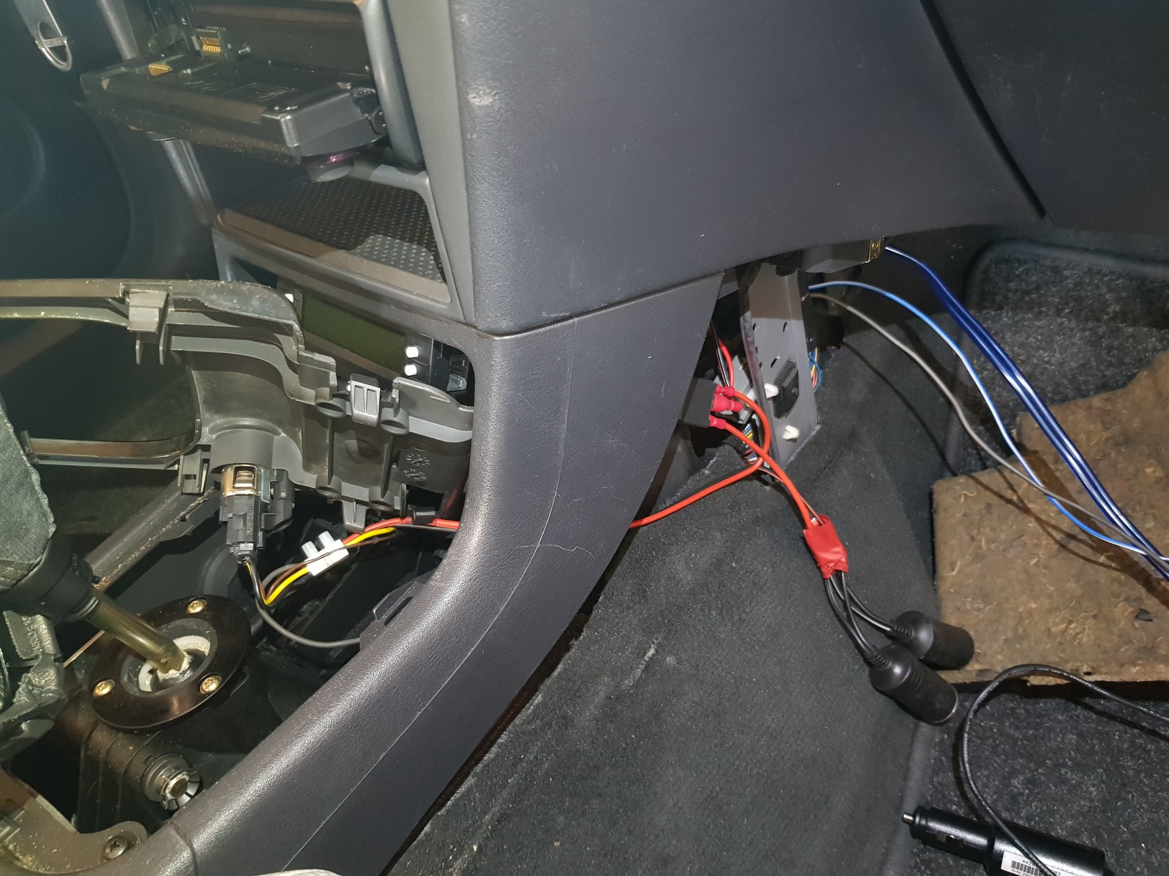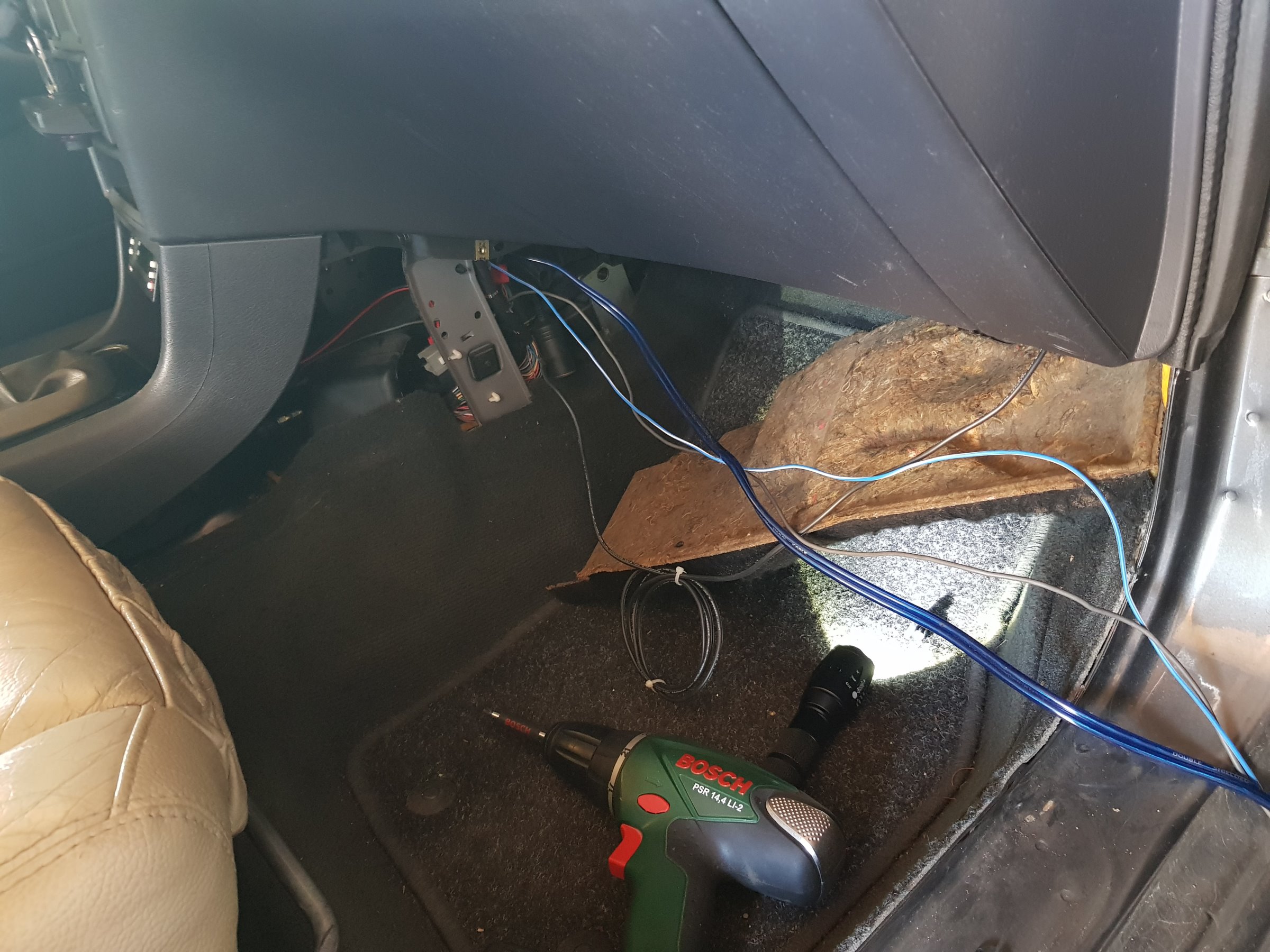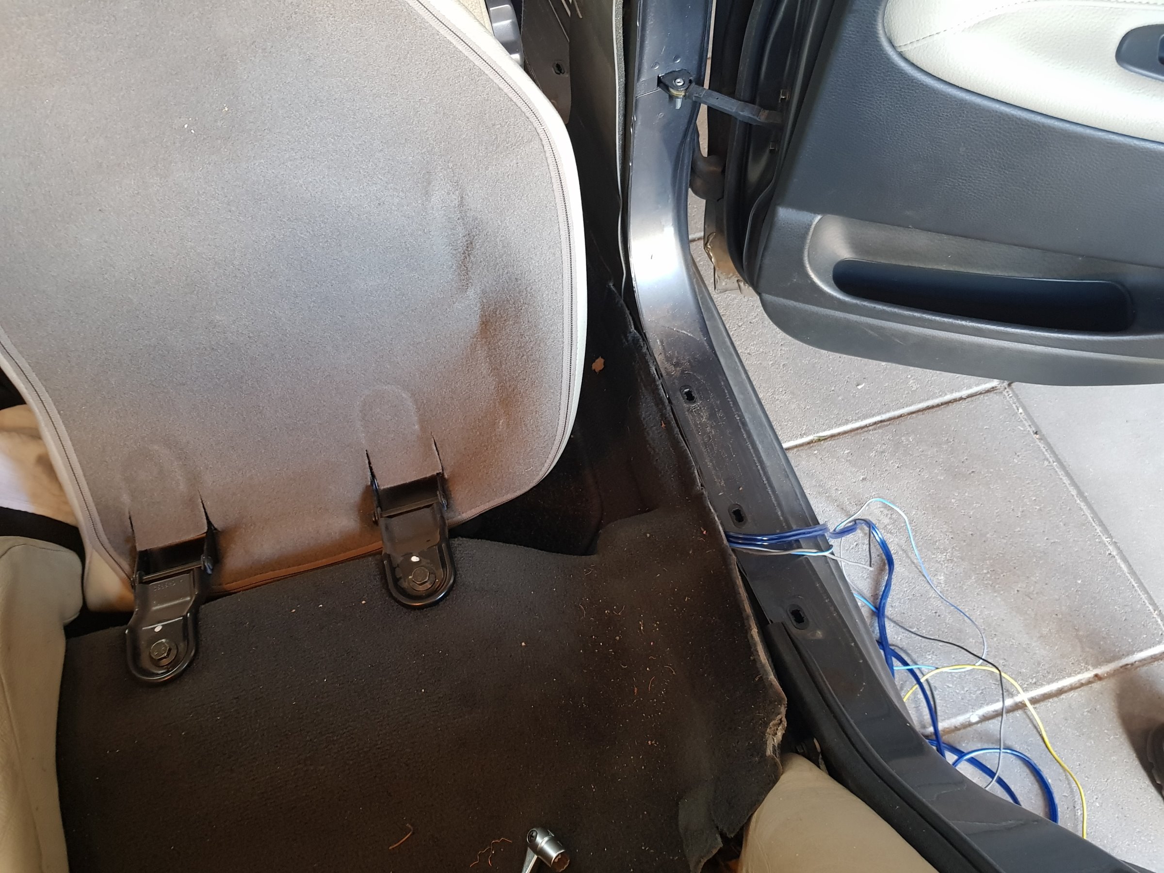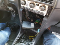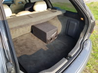 03-09-2018 De audio kabels worden nu doorgetrokken naar achter onder de vloerbedekking. 01 - Voorin, onder het dashboard en aan de passagierszijde.. 02 - Naast de passagiersstoel naar achteren. instaplijst eraf, en je kan er zo achter komen. 03 - Na het verwijderen van de B-stijl kan je naar achteren toe naast de achterbank. 04 - En dan ligt alle bedradign achterin om op de subwoofer kist aangesloten te worden. Voorin zijn het opbergbakje en de Kenwood KDC-W7041u reeds geplaatst. Tevens is ook de scangauge gemonteerd en de kabel weggewerkt. 05 - De Pioneer TS-WX205A 100w subwoofer kist, en de originele (nog aangesloten) subwoofer. |