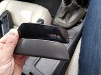 03-09-2018 01 - Lekker vroeg weer aan de gang. Ik begin met het makkelijke klusje, de armsteun. Bij de beige kleurige zat een mooi Piano Black frontje, die zet ik er ook op. 02 - 4 schroefjes en het ding zit er in. 03 - Nou dat staat wel netjes, een beetje meer two-tone in de auto. |