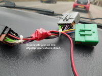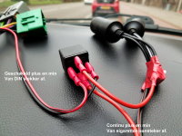 03-09-2018 Nu gaat de audio en Dashcam er in. Maar voor de dashcam wil ik een geschakeld stroompunt hebben, en de aansteker van de auto is continu aan, ook als het contact uit is. Ik ga weggewerkt in het dashboard twee contactgeschakelde stroompunten maken. 01 - Van de DIN kabel voor de radio pak ik de geschakelde plus en de min. Daaraan maak ik een redelijk lange draad. 02 - Die draad voedt de schakeling van een standaard relais. Dat vraag niet veel stroom en kan probleemloos van de radio af worden getapt. Op de schakelzijde van het relais komt een dikkere draad, de continu plus vanaf de standaard sigaretten aansteker. Door het relais is deze nu geschakeld. Ook de min pak ik van de sigaretten aansteker, maar die gaat rechtstreeks naar de nieuwe stroompunten. 03 - Op de sigarettenaansteker van de auto is geel = plus, zwart = min. bruin = voor het lampje. |