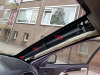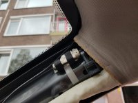 20-10-2018 Deze tijd van het jaar is het zeldzaam dat ik mijn auto overdag zie. Maar nu ik hem wel in daglicht zag viel mij het volgende op, de Paravan ziet niet goed gemonteerd. Dit is niet goed gedaan bij het vervangen van de ruit. Het kan geen kwaad, maar ik wil het binnenkort wel (laten) herstellen. |