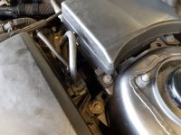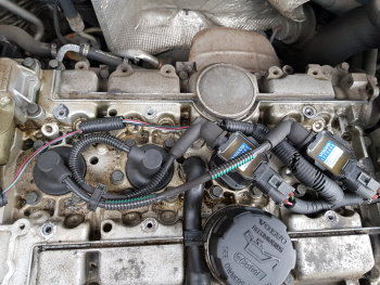 30-12-2018 Omdat ik af en toe door de ventilatieroosters een 'motorluchtje' ruik besluit ik vandaag eens even op onderzoek uit te gaan naar de oorzaak. De afdekkappen van de motor heb ik verwijderd en ik heb nu goed zicht op alles. Ik kinijp en voel aan alle leidingen voor lekkages... en ook controleer ik of alles droog is. 01 - Al direct na het demonteren van de bovenste afdekkappen zie ik een beetje olie liggen op het blok. Dit zou van knoeien bij het bijvullen kunnen zijn, maar het ziet er wel erg vers uit... ik weet niet zeker of dit is wat ik zo nu en dan ruik. 02 - Verder is alles droog bij de injectoren... 03 - ...en bij het gasklephuis. 04 - Dan blijft vooralsnog alleen de olie over. Al heb ik het idee dat het meer een benzinelucht is die ik ruik, maar daar zie ik niks geks van. Deze auto is uitgerust met een oliescheider op de carterventilatie, waarvan hij de gassen hergebruikt. Hierbij is het normaal dat er een onderdruk in het blok is. Als je met lopende motor de oliedop verwijderd moet hij lichtjes aanzuigen, zeker niet blazen want dat is overdruk. |