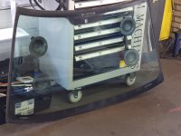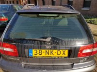 15-10-2018 Eindelijk krijgt de auto de nieuwe voorruit. De oude heeft veel last van ruitenwisser krassen en dit is zeer hinderlijk in het donker. De ruit wordt vervangen onder de verzekering, ik draag alleen de eigen risico. 01 - Zo. De ruit eruit. Zie je het parkeerkaartje linksonder? Die kreeg ik daar niet weg... 02 - ...nu wel 03 - De oude ruit. De scheur komt door het demonteren. |