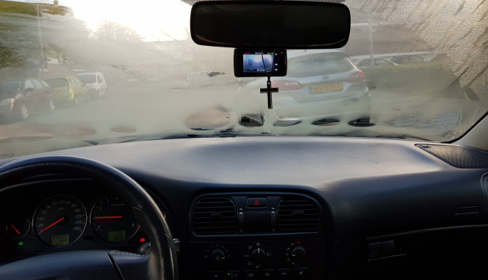 03-09-2018 01 - Nu ik geschakelde stroompunten heb kan de dashcam ingebouwd. Ik begin met het verwijderen van de A-stijl aan de passagierszijde. En met een trekdraad wordt de USB stekker van de Dashcam naar boven geholpen door het dashboard heen. 02 - En dan omhoog via de stijl, en onder het plafond geduwd. 03 - Boven de voorruit eveneens onder het plafond, tot ongeveer in het midden. 04 - Op de A-stijl wordt de draad met tape gefixeerd, veilig weg bij de gordijnairbag (die witte doek op de foto). 05 - En na het terug klikken van de A-stijl bekleding en het plaatsen van de Dashcam zelf, kan de stekker er in en hij doet het. En netjes op het contact. |