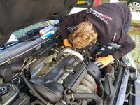 29-09-2018 Vandaag zijn we op een gezellige Volvo40forum sleuteldag. 01 - De auto staat al lekker binnen. 02 - En dan gaan we langzaamaan beginnen. Alle verlichting wordt nagekeken. 03 - Ook aan de achterkant is alles in orde. 04 - Hier hang ik ondersteboven, maar ik kan er net niet bij.. 05 - ...Brian wel 06 - En zo is de kachelmotor er uit, effe schoonmaken en smeren. 07 - Dan wordt de TCV uitgewisseld om te kijken of dat verschil maakt voor de turbodruk. 08 - Brian leest de auto uit... 09 - En helaas, de storing bestaat nog steeds. 10 - Dan wordt er een rookapparaat op de auto aangesloten om te zien of er een slang lek is. 11 - En jawel hoor, hier op de nippel naar de TCV lekt hij. voor nu is er niks meer aan te doen. 12 - De brug komt vrij en ik zet mijn auto er op. Even de onderkant bekijken. 13 - Achterste deel ziet er allemaal goed uit. Ophanging, remleidingen, brandstoffilter... alles ziet er goed uit. 14 - Middelste deel. Ook hiet alle snetjes. Remleidingen niet gecorodeerd, middendemper nog prima. 15 - Voorste deel. Motor netjes droog. ophaning ziet er goed uit. Motorsteunen nog heel. 16 - Nog even een blik op de demper die er in 2016 onder is gezet. 17 - Een heel klein beetje zweet bij het differentieel. 18 - Ik heb ook maar gelijk een nieuwe accu geplaast, de oude stond op krap 12.0V...en de winter komt er straks aan. 19 - Onderweg naar huis gespot |