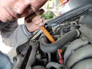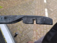 08-11-2018 01 - Toen ik op 24-10 mijn ruitenwissers verving viel mij op dat de achterwisser niet meer vast zat op de arm, hij werd enkel op de ruit geduwd. Doordoor bleef hij ook niet goed in positie en veegde hij niet goed. Het euvel blijkt een afgebroken klemdeel te zijn. 02 - Via het forum bemachtig ik een andere wisserarm. Helaas bleek deze het zelfde probleem te hebben, het deel klemt niet meer omdat het gescheurd is. 03 - Omdat dit nog steeds beter is dan mijn eigen arm verzin ik iets hierop... 04 - ... ik heb een paar gaatjes geboord, het wisserblad geplaatst, en gefixeerd met een tie-wrap. 05 - Dit zit als een huis nu. Op de auto ermee... 06 - De oude arm er af... klaar voor de nieuwe. Maar dan... 07 - Een ruitenwisserarm heeft een veer om de wisser op de ruit te duwen, er staat dus spanning op de arm. Bij het vastdraaien van de moer en dus het toenemen van de spanning breekt spontaan de arm af, en valt op de grond. Als je goed kijkt op de breuk (klik op de foto voor vergroting) zie je dat de bovenste helft ervan donker is, daar is hij al geruime tijd gescheurd, het lichtkleurige deel is zojuist gebroken. 08 - Terug naar mijn werkplaats dan maar. 09 - Ik besluit hetzelfde truucje op mijn eigen wisserarm los te laten, hopen dat het blad hiermee wel op zijn plek blijft zitten. 10 - Ik heb de gaten iets dichter op het het blad geboord, nu klemt de tie-wrap wat meer. 11 - Een eenvoudige test laat zien dat mijn oorspronkelijke wisserarm het nu wel goed doet. |