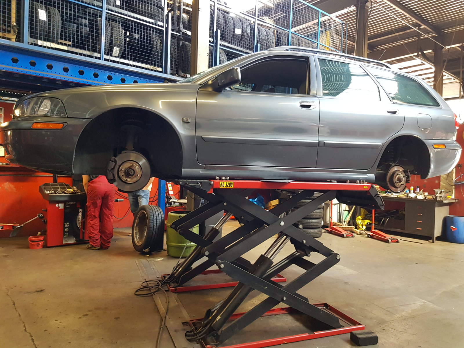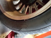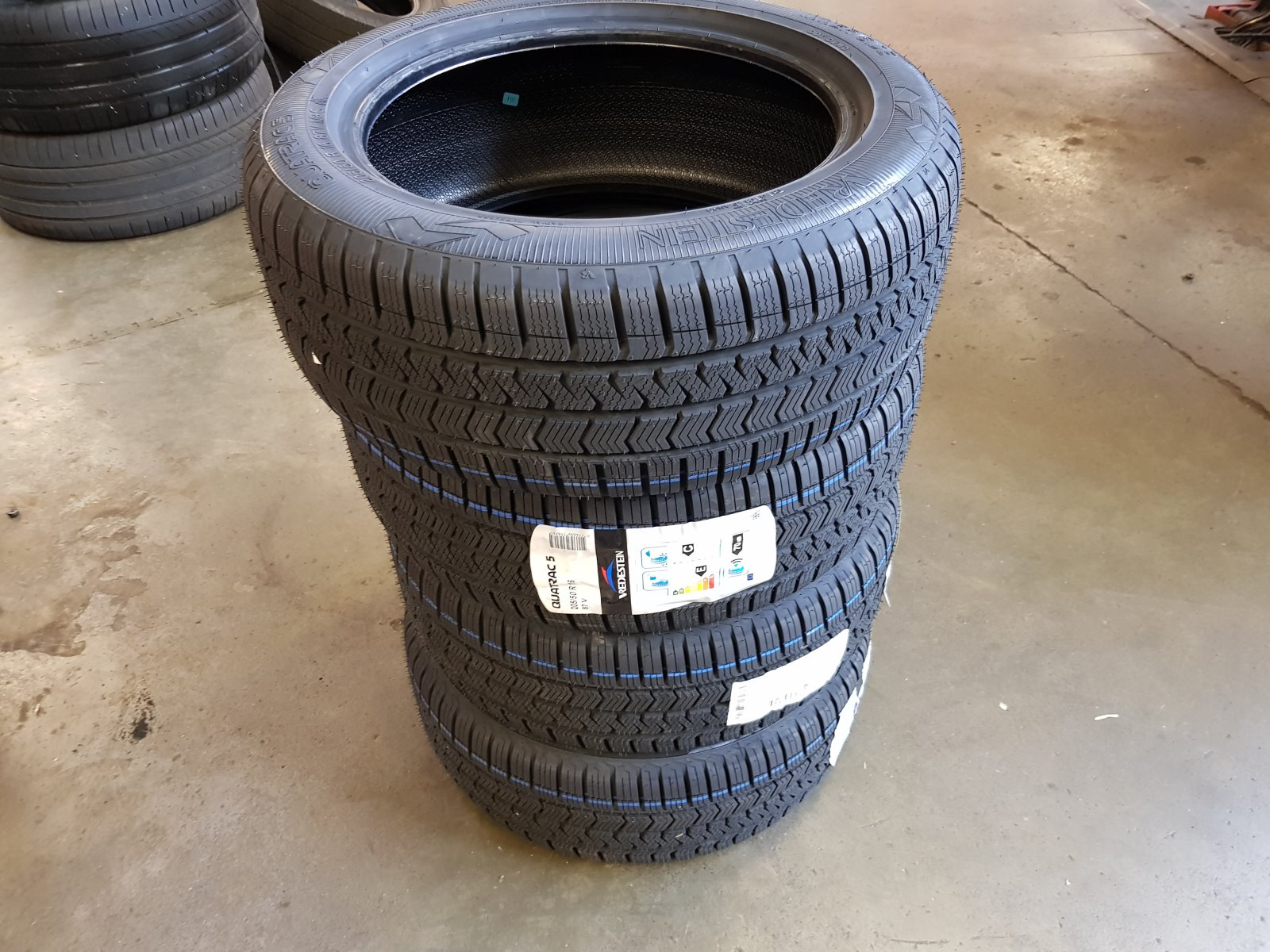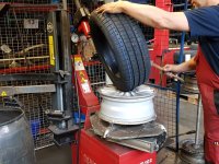 06-07-2019 01 - Gisteren heb ik de auto aangeboden voor APK, echter bleken er een paar banden scheurtjes te hebben. Vandaag worden ze alle 4 vervangen. 02 - Op de brug. Dit geeft mij ook de kans om er weer eens onder te kijken en andere APK punten (fussee hoesjes) te zien. 03 - Deze mooie stapel is voor mij. 04 - Vredestein Quatrac 5. 205/50R16. 05 - Nu kan ik ook de remmen zien. Daar is voorlopig nog niks versleten. 06 - De nieuwe banden worden gemonteerd. 07 - En vervolgens gebalanceerd... 08 - Keurig. Dit keer wel met plaklood aan de binnenzijde, geen slaglood aan de buitenzijde van de velg. 09 - Helaas werd er wel een plat kantje geconstateerd op 1 velg. Dit is nog wel te richten, dat komt nog wel een keertje. 10 - Een half uurtje later komt hij al weer van de brug af. Op lekker vers rubber. |
